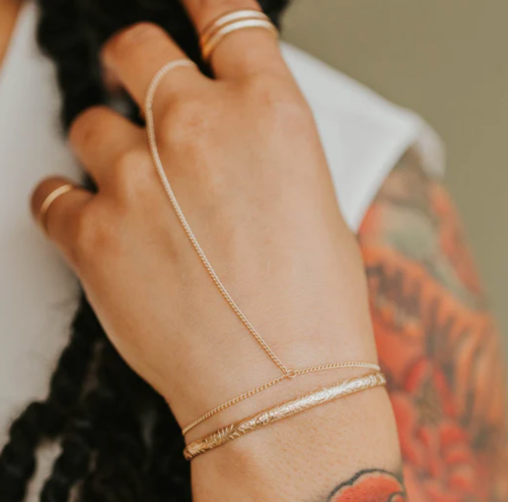 A garden for your wrist. Made with an open design to create a piece that's both structured and organic—sliding effortlessly onto your wrist and staying comfortably in place throughout your day. One size.