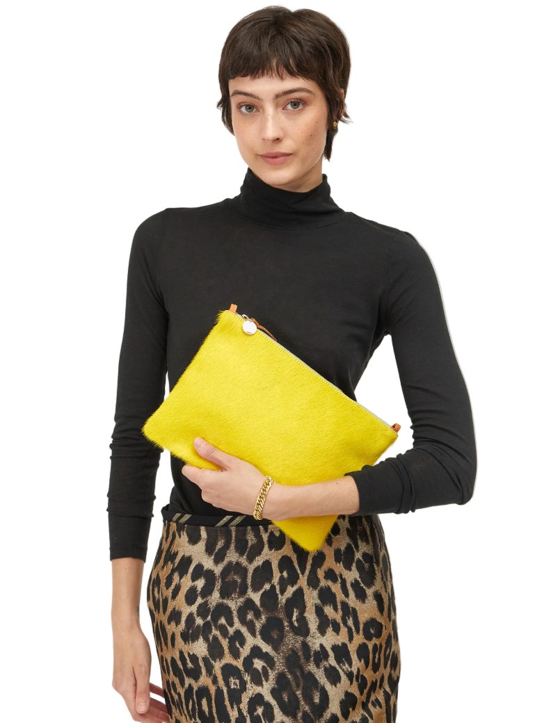 Clare V. - Hair-On Hide Flat Clutch Bag - Citron