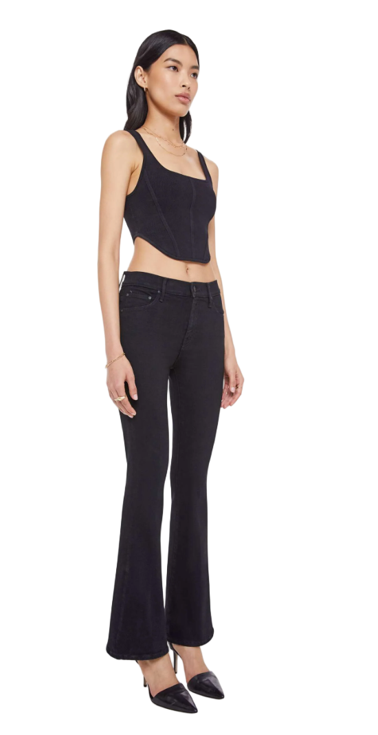 Sweet dreams. This cult-favorite flare jean has a mid rise with a 31-inch inseam and a clean hem. Cut from denim with a touch of stretch, Nighty Night is a dark black with tonal hardware. Made in Los Angeles utilizing fine imported materials.