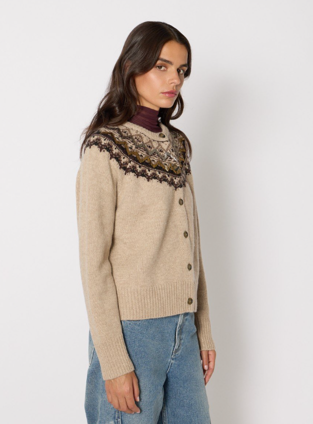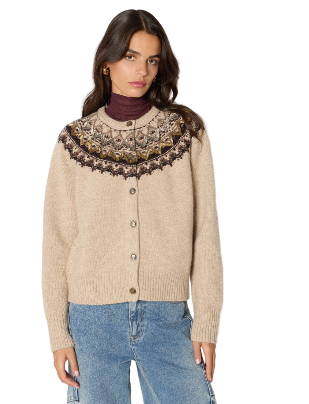 Berenice - Embellished Fair Isle Wool Cardigan - Beige