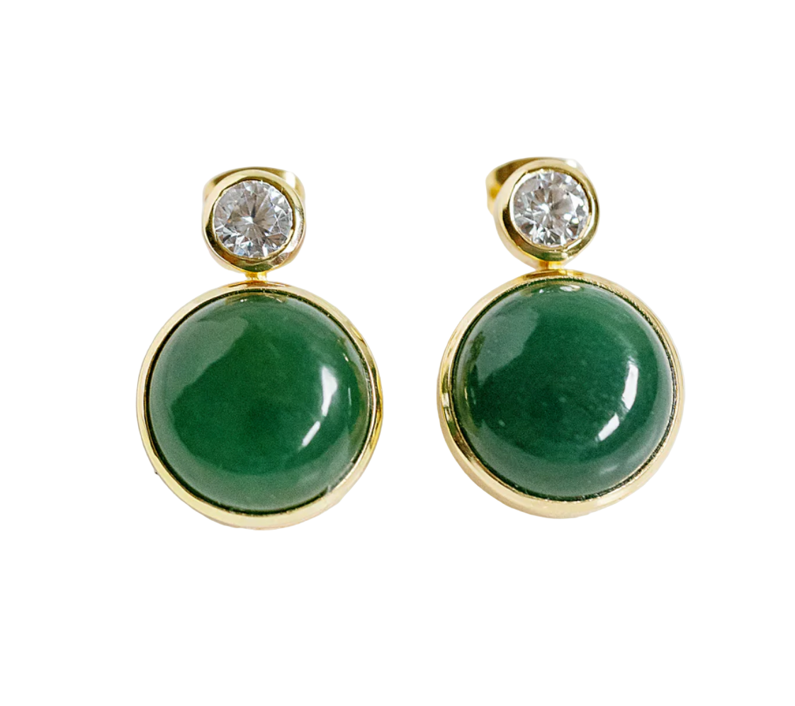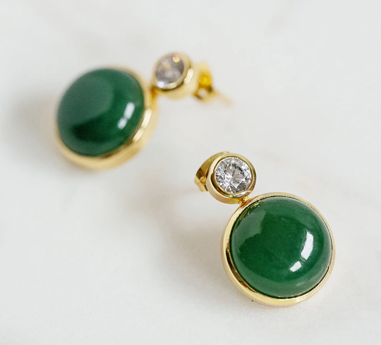 Laura Foote - Floating Gem Stud Earrings - Green Aventurine
