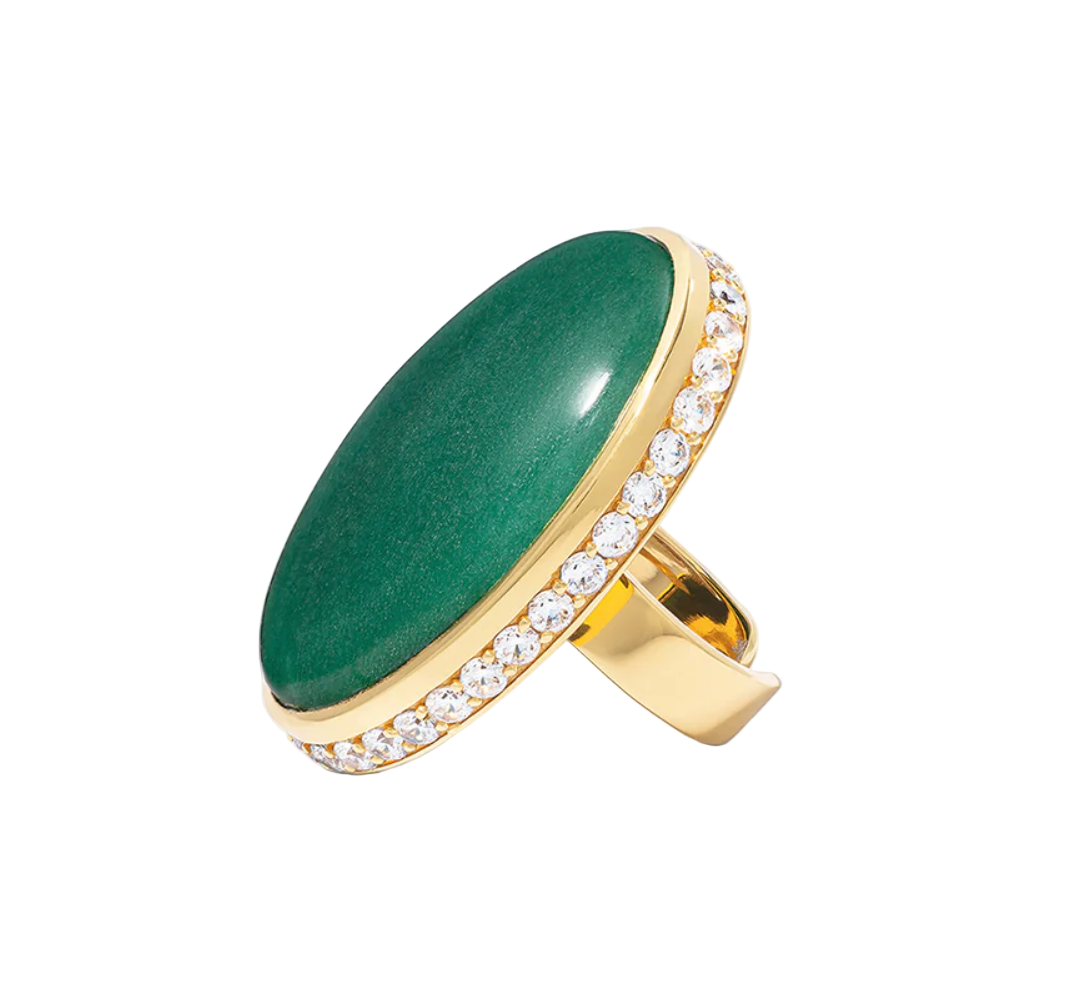 Featuring clean lines and a polished natural gemstone framed by a row of sparkling cubic zirconia stones, this ring adds a touch of luxury and edge to any ensemble.