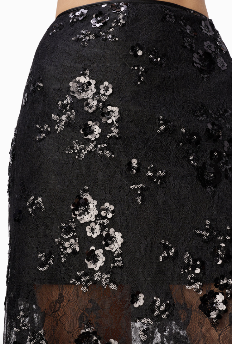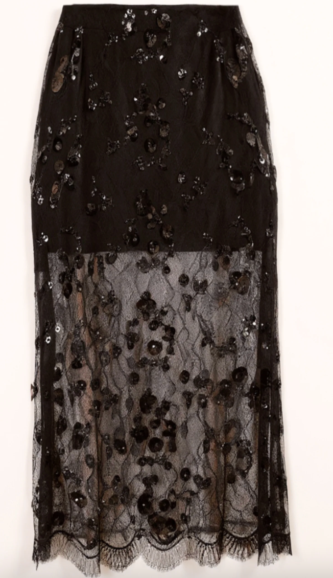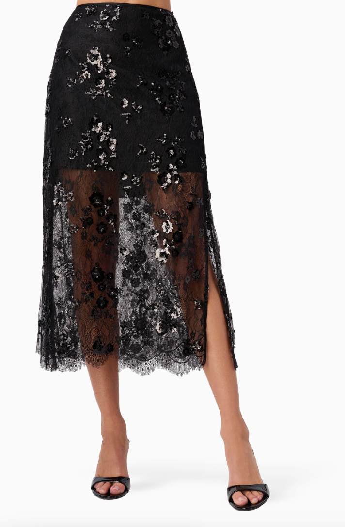 Elevate your evening repertoire with this sophisticated sequin lace midi skirt from Cami NYC. Crafted from shimmering sequin lace, the Aylin skirt delivers refined glamour with understated elegance. A practical side slit enhances movement and silhouette, while the concealed side zipper ensures a seamless, polished appearance. The mid-thigh lining provides appropriate coverage and comfort beneath the delicate lace overlay. Pair with the Catherine Cashmere Tunic or the matching Aracely Sequin Lace Top. Perfect for the holidays, date night, or special occasions where refined sparkle is warranted.