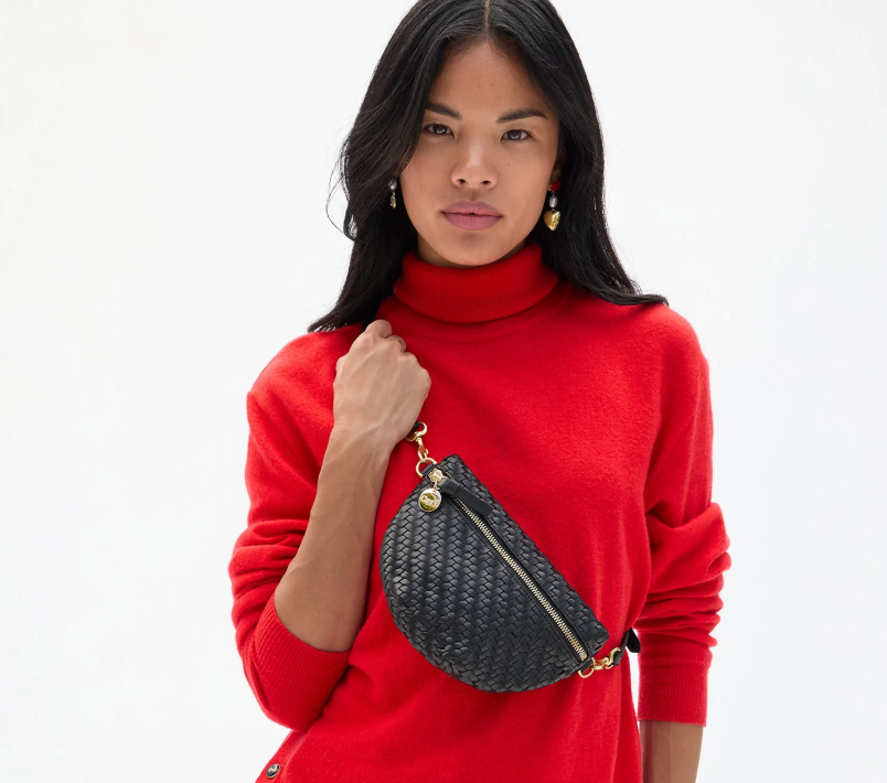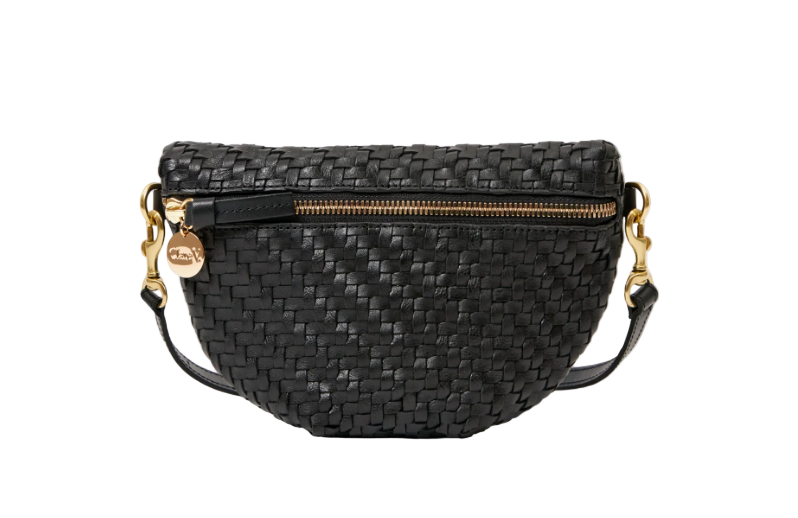 Clare V. - Woven Leather Petite Fanny Bag - Black Zig Zag