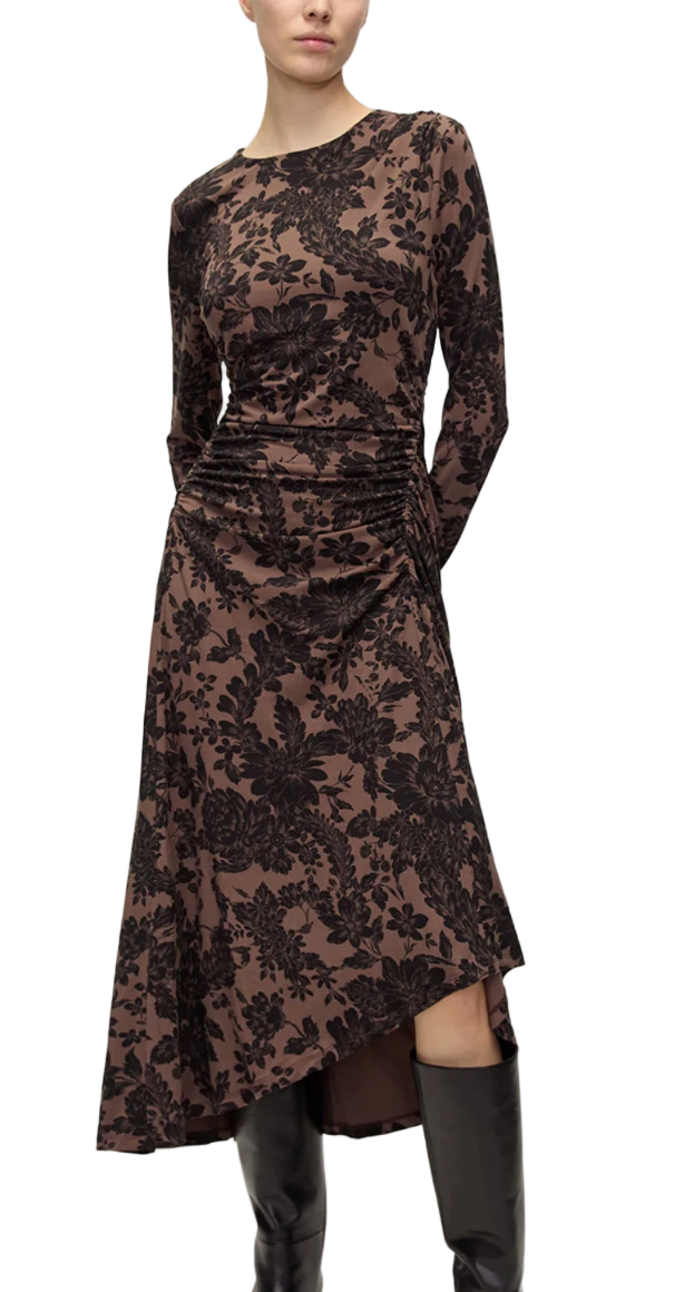 The one-and-done dress, perfected for cooler months. The Theodora is crafted from a premium Italian fabric with subtle stretch for ease. A sleek boatneck and ruching at the waist create a flattering silhouette, while the high-low A-line skirt adds elegant draping and fluid movement. Pair this printed dress with tall boots or heels for a polished look that seamlessly transitions from day to night.