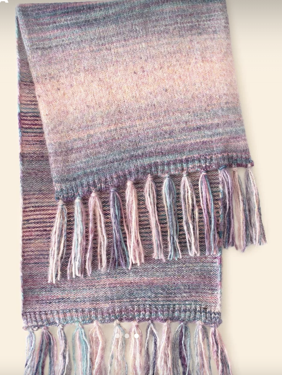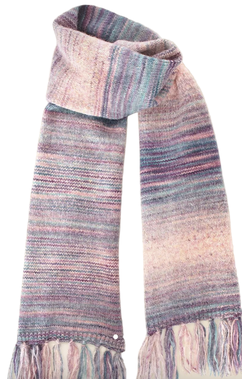Soft spot. Fonda is new this season in our colorful ombre-striped gradient made from the finest Italian merino alpaca blend. This cozy scarf features fringed ribbed trim.