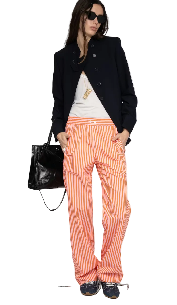 Straight-leg, jogger-inspired trousers in striped poplin with an elasticated waistband and button trim. In a cheery pink and orange crisp stripe.