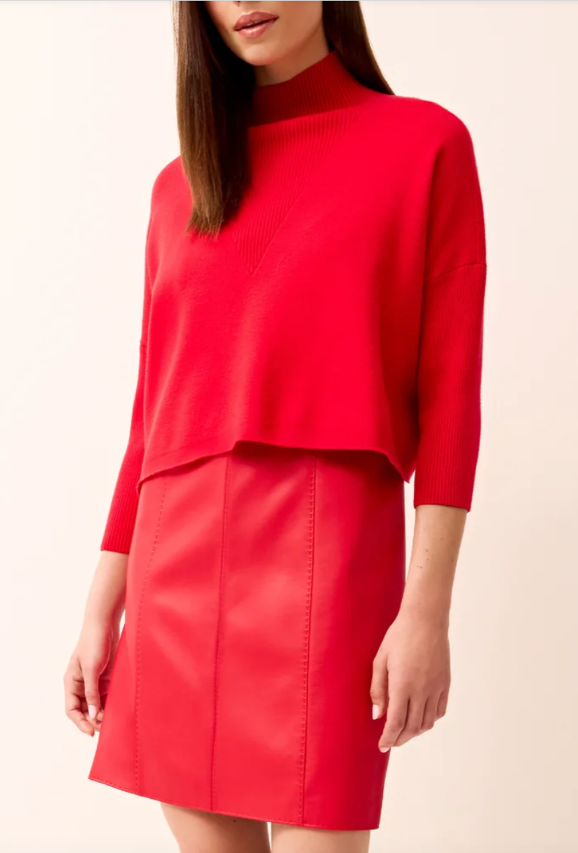 The definition of "effortless," our Claudie popovers pair beautifully with your favorite denim, and extend the wearability of dresses and skirts well into fall and winter. The cropped body features a boxy fit with three-quarter-length batwing sleeves, and refined ribbed knit detailing at the neck and sleeves. Pairs perfectly to layer over the Violette faux leather minidress for an elevated Game Day look.