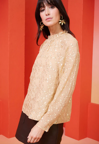 Marie Oliver - Layla Silk/Metallic High Neck Blouse - Taupe
